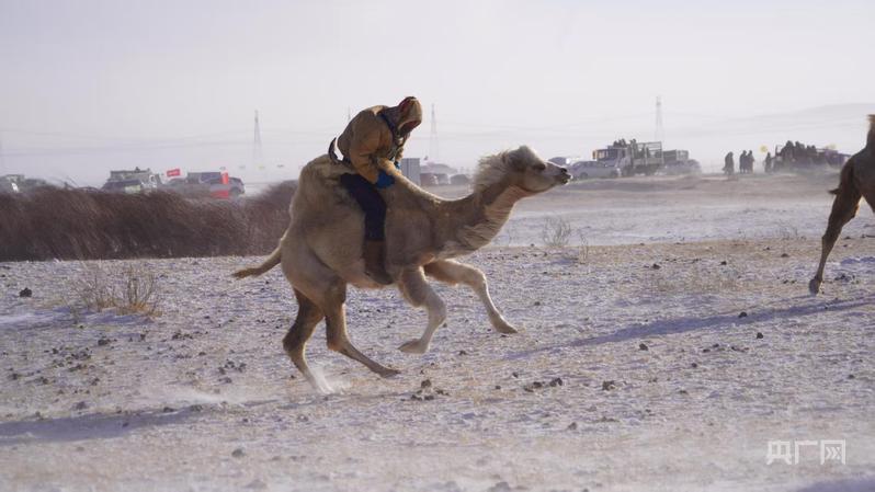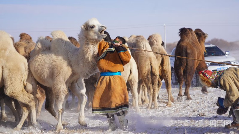 牧民端坐驼背,寒风中演绎游牧传承(央广网发 哈斯图亚 摄)